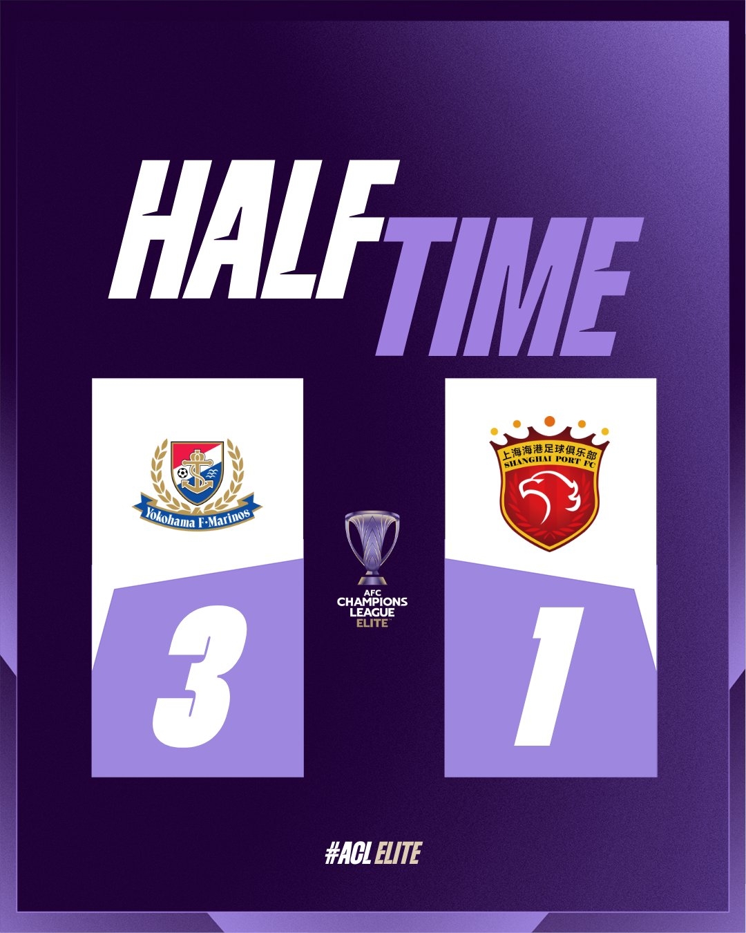 傷停補(bǔ)時(shí)4分鐘。上半場比賽結(jié)束,上海海港1-3橫濱水手。