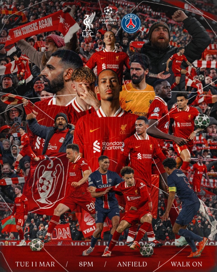 03月11日訊 歐冠1/8決賽次回合,利物浦主場對陣巴黎,首回合利物浦1-0占得先機。