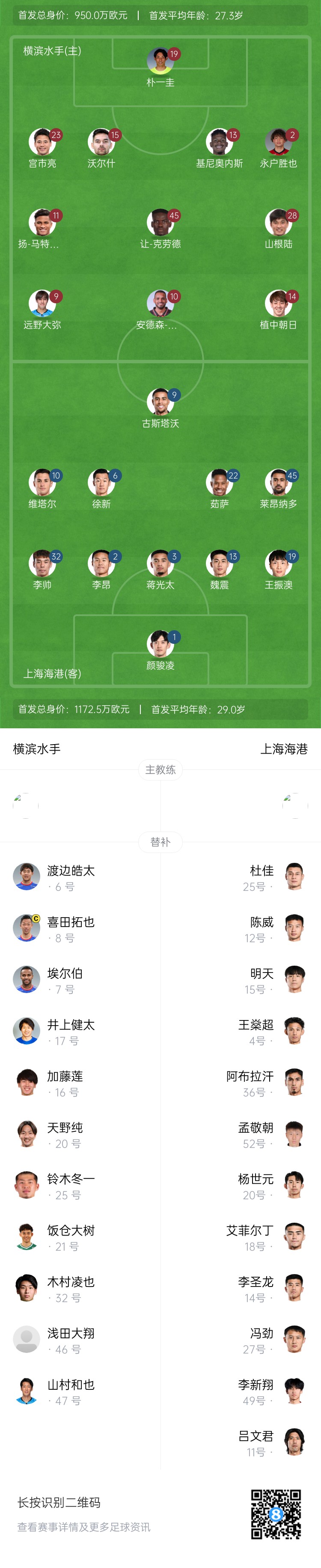 海港vs橫濱首發(fā):4外援PK5外援!茹薩解禁,萊昂納多、魏震先發(fā)