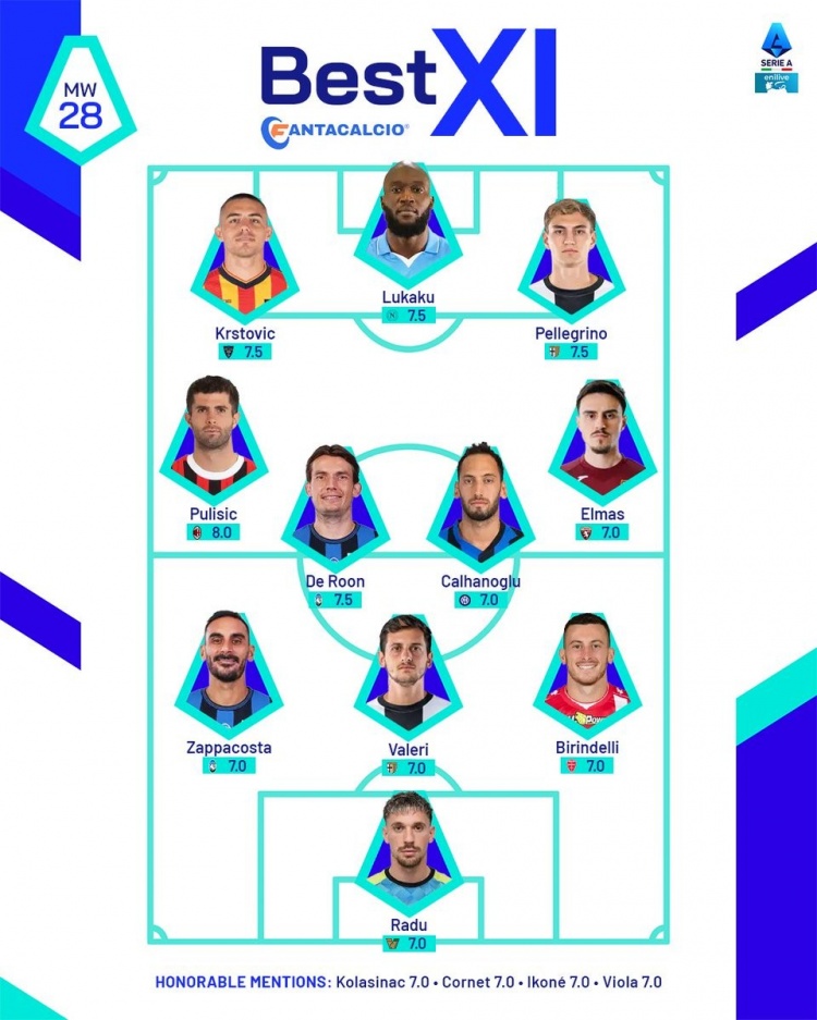 意甲官方第28輪最佳陣容: