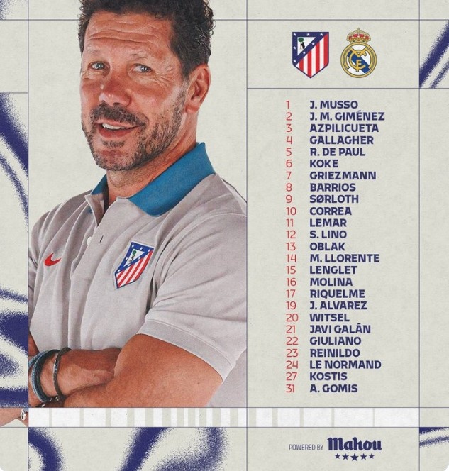 馬競VS皇馬大名單:格列茲曼、阿爾瓦雷斯領銜,德保羅出戰(zhàn)