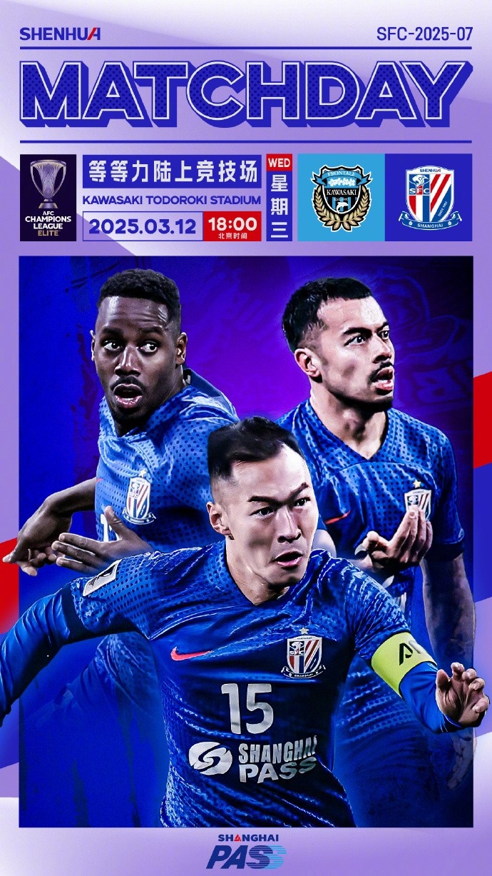 3月12日訊 今晚申花將在亞冠精英聯(lián)賽1/8決賽次回合客場對陣川崎前鋒,賽前申花俱樂部發(fā)布了本場比賽的海報。