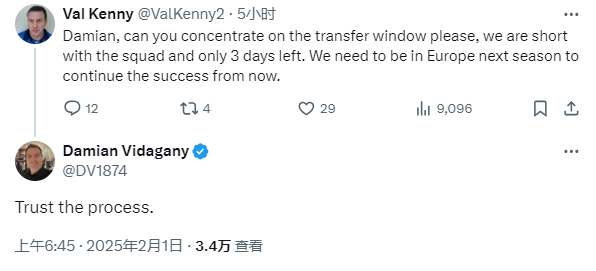 球迷社媒留言要求維拉總監(jiān)引援,后者回復(fù):相信過程