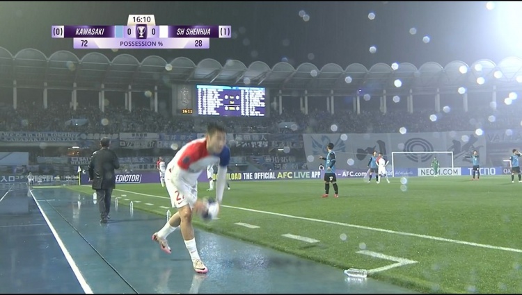 3月12日訊 亞冠精英聯(lián)賽東亞區(qū)1/8決賽次回合,上海申花客戰(zhàn)川崎前鋒,本場比賽時現(xiàn)場下起了大雨。