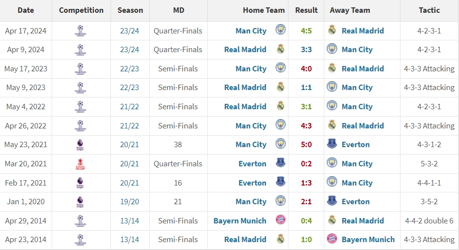 安切洛蒂與瓜迪奧拉此前共交手12場,瓜帥6勝,安帥4勝,戰(zhàn)平2次。