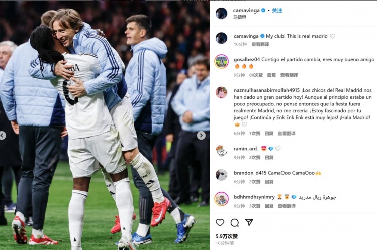 他也在賽后通過(guò)社媒,曬出自己和老將莫德里奇在點(diǎn)球大戰(zhàn)之后相擁慶祝的合照,并配文:“我的俱樂(lè)部!這就是皇馬!”