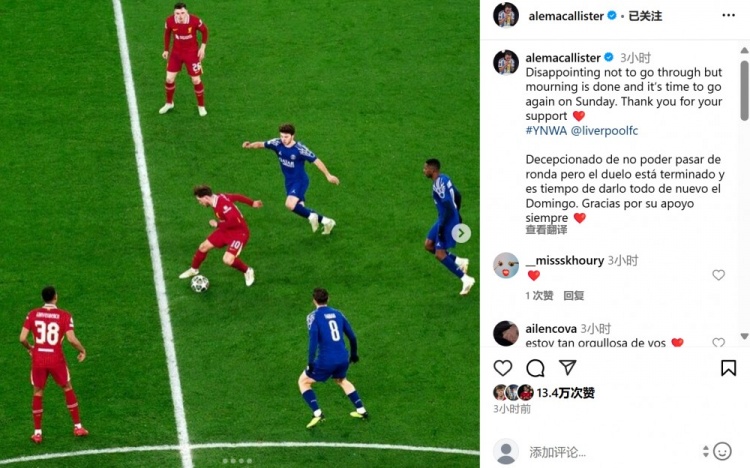 麥卡利斯特社媒:很失望未能更進(jìn)一步,但是時(shí)候再度出發(fā)了!