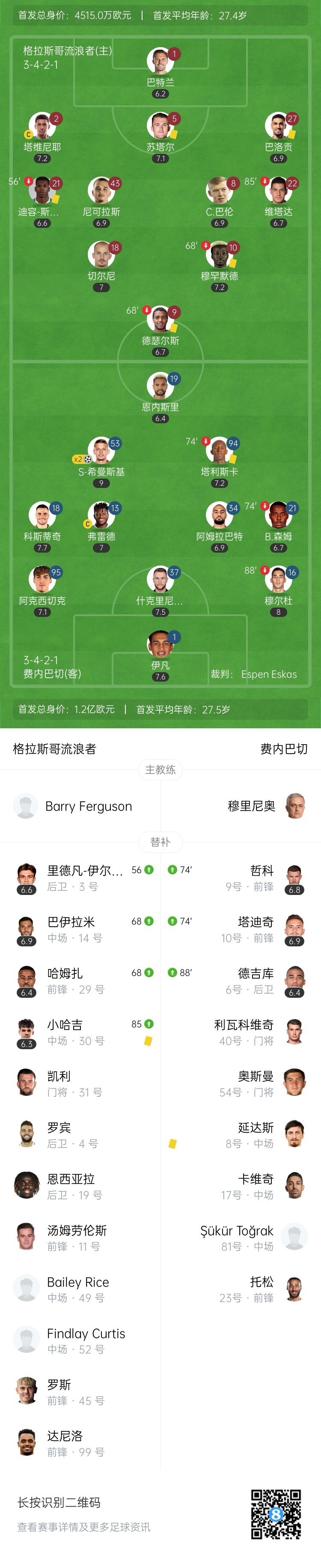【雙方比賽陣容】