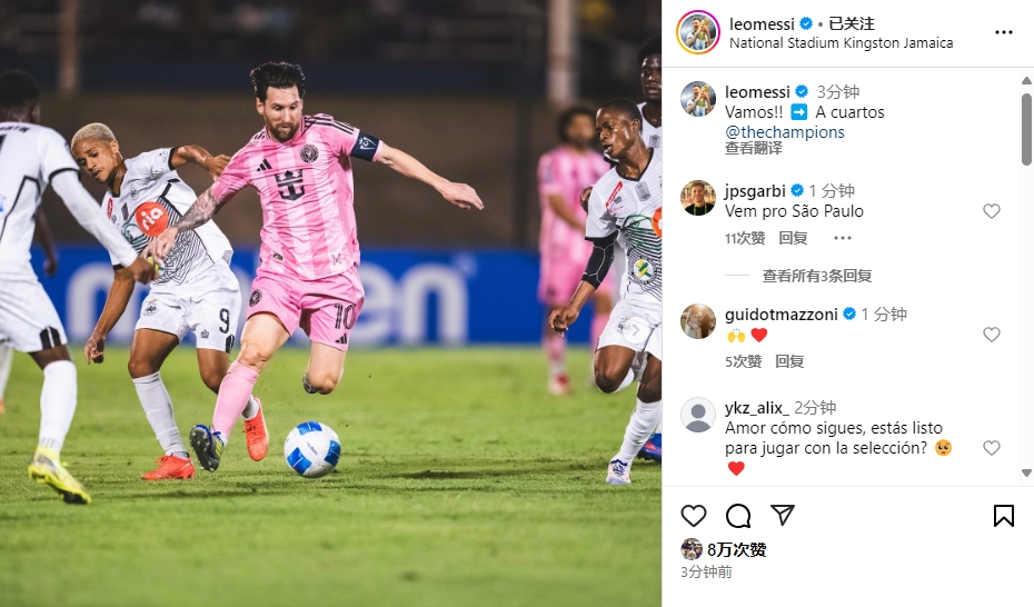 - 梅西更新ins:加油??!??進入中北美冠軍杯1/4決賽