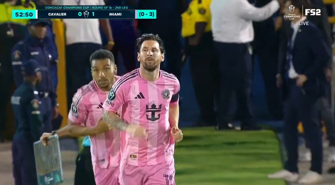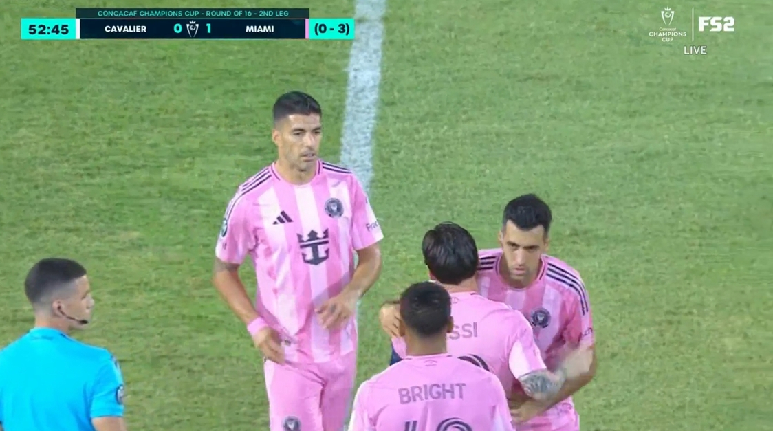 他來了!比賽第53分鐘梅西替補上場,蘇亞雷斯、布斯克茨被換下