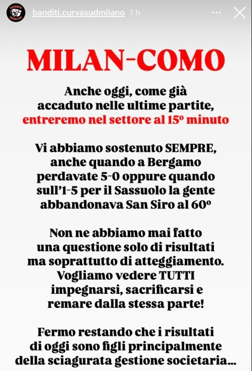 米蘭南看臺在社媒寫道: