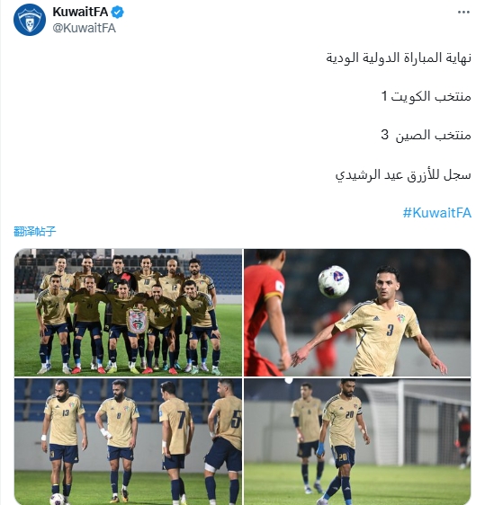 中國(guó)男足熱身賽3-1戰(zhàn)勝科威特,科威特足協(xié)社媒分享了本場(chǎng)比賽照片。