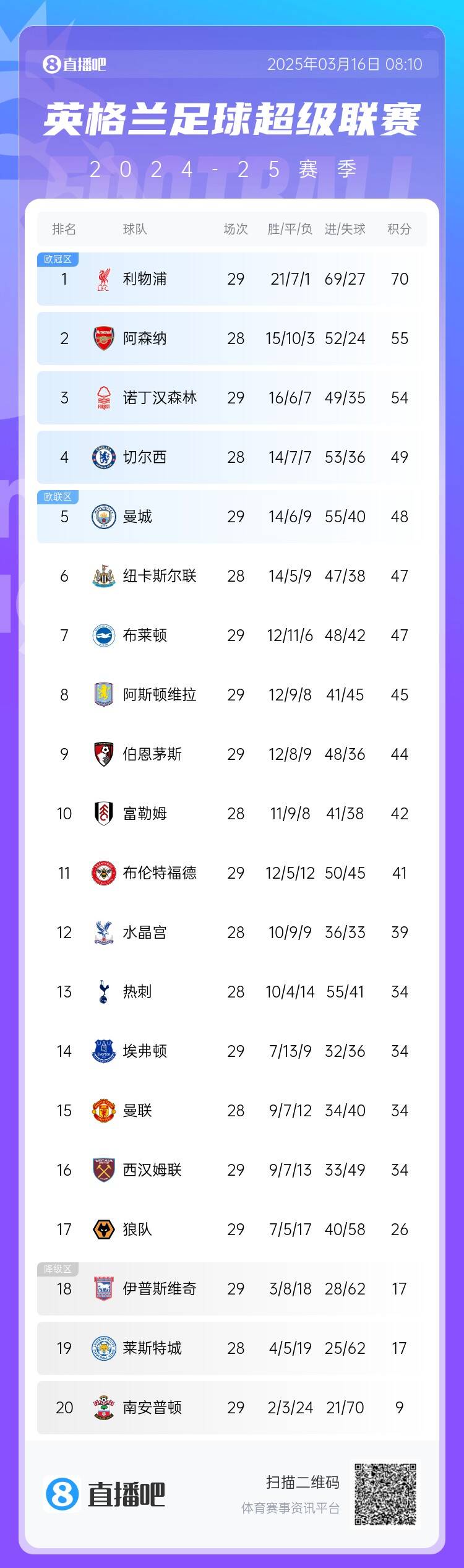03月16日訊 英超第29輪比賽多場戰(zhàn)罷,狼隊(duì)2-1擊敗南安普頓拿下3分,現(xiàn)已領(lǐng)先降級(jí)區(qū)9分保級(jí)形勢(shì)大好。