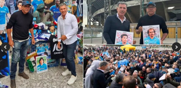 這兩位那不勒斯傳奇也拿著自己球員時代的照片來到馬拉多納球場外,他們被球迷包圍并為球迷簽名。