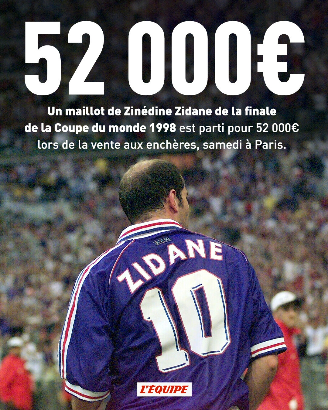 隊(duì)報:齊達(dá)內(nèi)的98年世界杯決賽備用球衣拍出5.2萬歐高價