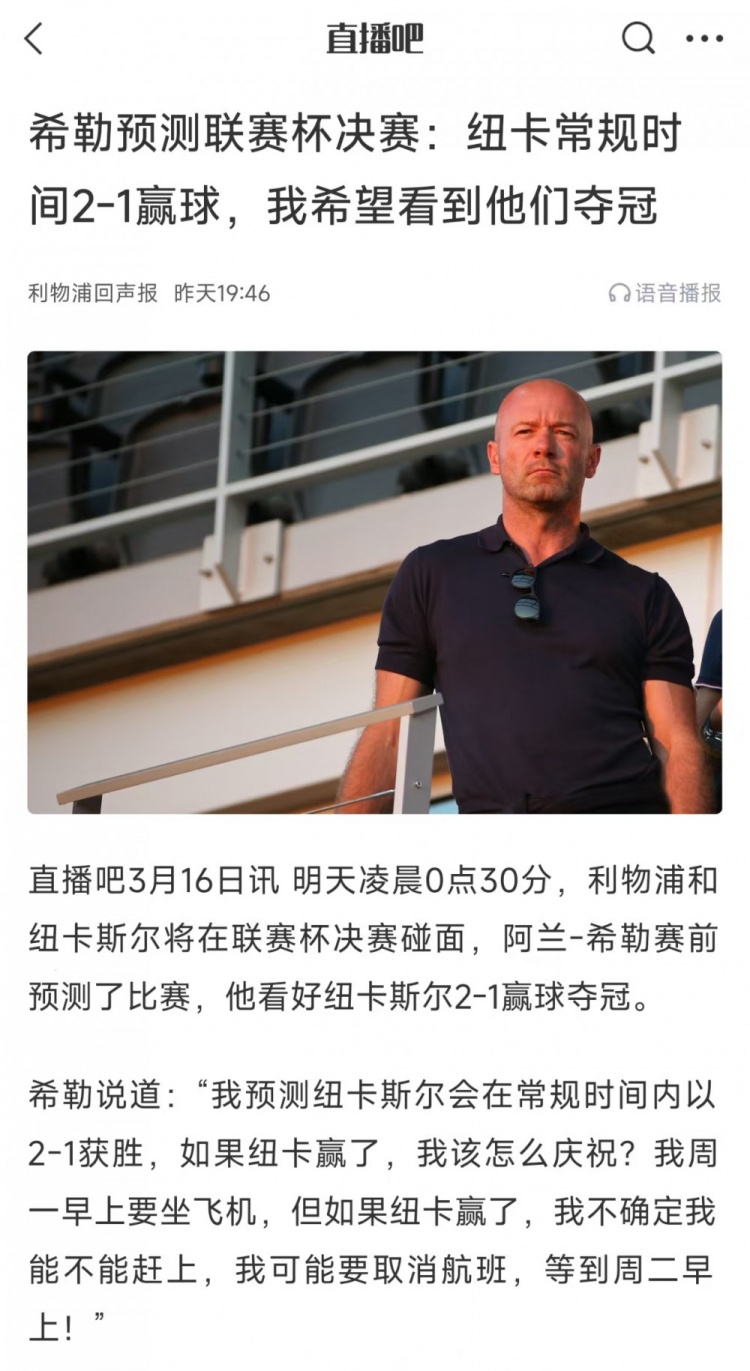 小嘴開了光!希勒賽前精準(zhǔn)預(yù)測(cè):紐卡常規(guī)時(shí)間2-1贏利物浦