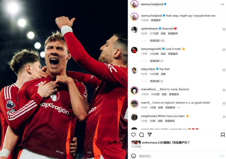 本場(chǎng)進(jìn)球的霍伊倫也終結(jié)了自己連續(xù)21場(chǎng)進(jìn)球荒,賽后他在社媒曬出與隊(duì)友慶祝進(jìn)球的合影,配文寫道:“好吧,我承認(rèn)喜歡這種感覺(jué)?!?/p>