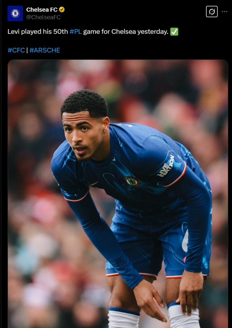 本場(chǎng)比賽科爾維爾首發(fā)出戰(zhàn),這也是他代表切爾西在英超賽場(chǎng)的第50次出場(chǎng)里程碑,球隊(duì)官方也曬照為其紀(jì)念。