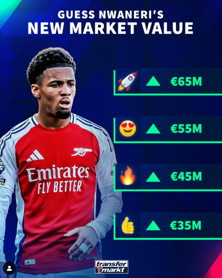 3月17日訊 德轉(zhuǎn)將在明日更新英超球員身價,德轉(zhuǎn)預(yù)熱阿森納小將恩瓦內(nèi)里將是身價大漲的球員之一。