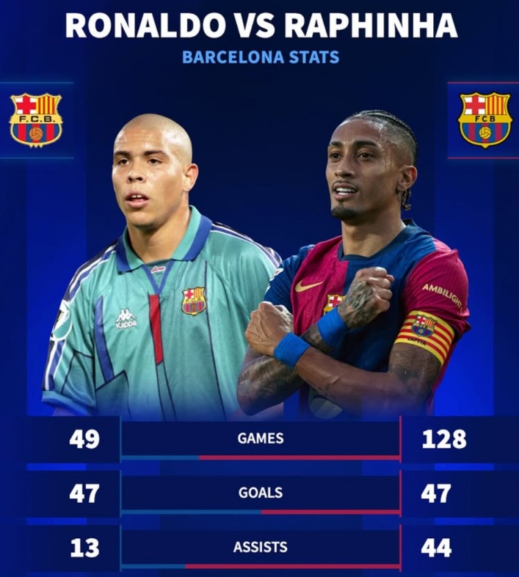 數(shù)據(jù)統(tǒng)計顯示,在本場比賽之前,拉菲尼亞就已經(jīng)為巴薩出戰(zhàn)128場比賽貢獻47球44助攻。