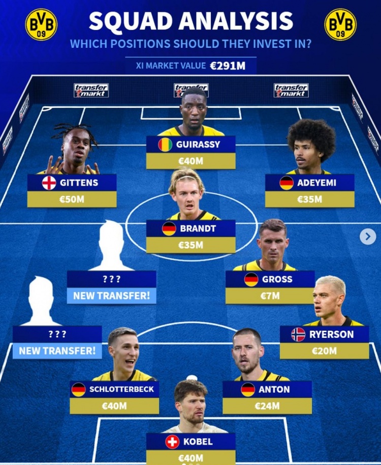 簽小貝林+津琴科?德轉(zhuǎn)列多特當(dāng)前主力陣:左后衛(wèi)、后腰需補(bǔ)強(qiáng)