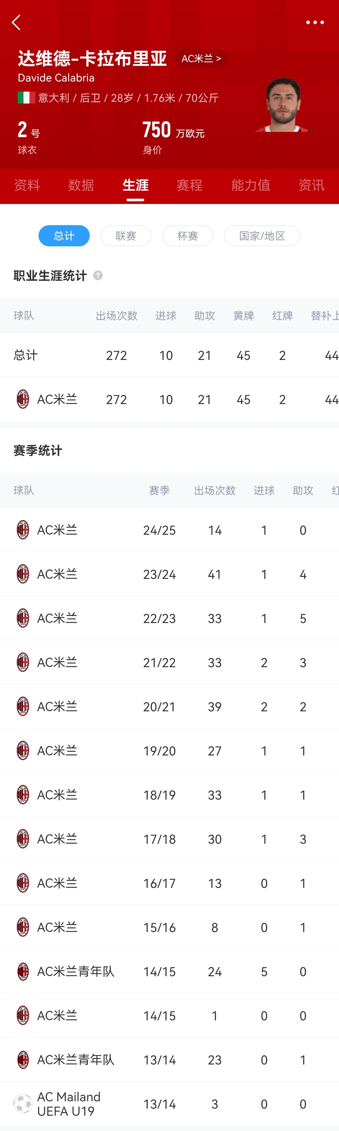 卡拉布里亞11歲加盟米蘭,至今已有17年歲月。