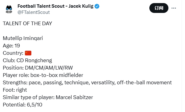 03月19日訊 王鈺棟昨日登上全球球探網(wǎng)站Football Talent Scout“今日天才”板塊,據(jù)博主“朗尼克”介紹,這是過去十年間第二個登上這個網(wǎng)站的中國球員。比王鈺棟更早登上Football Talent Scout的是蓉城青訓(xùn)出身的木塔力甫。