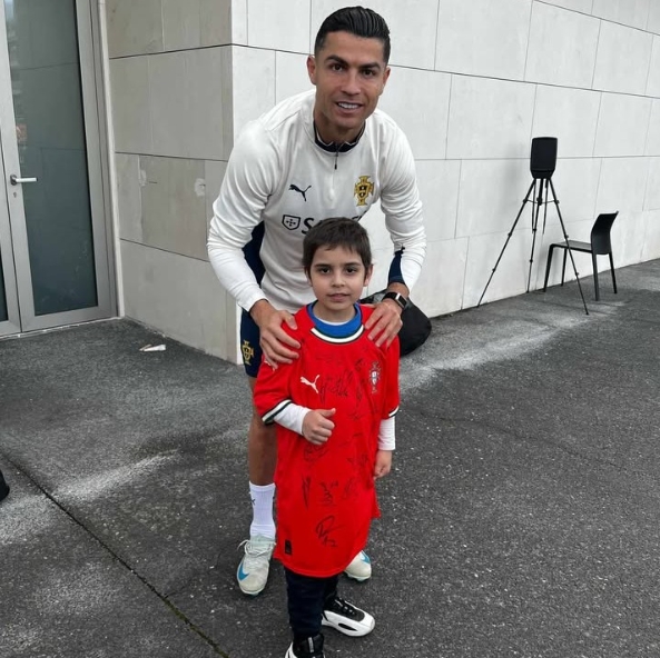暖心!回國(guó)備戰(zhàn)間隙,C羅和病重小球迷見面并合影留念