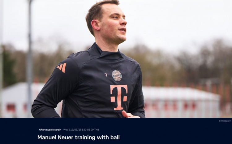 拜仁官方:諾伊爾小腿拉傷后首次恢復(fù)有球訓(xùn)練