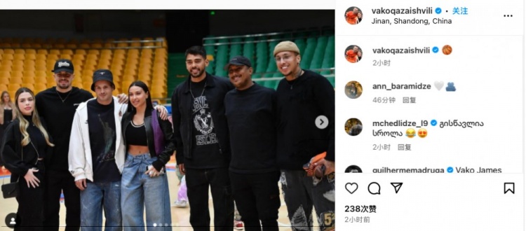 昨日山東泰山外援卡扎伊什維利更新社媒,曬出自己和家人朋友在濟(jì)南現(xiàn)場觀看CBA常規(guī)賽山東vs廣州的比賽,賽前他還秀了一把籃球技巧,罰籃空心入網(wǎng)。