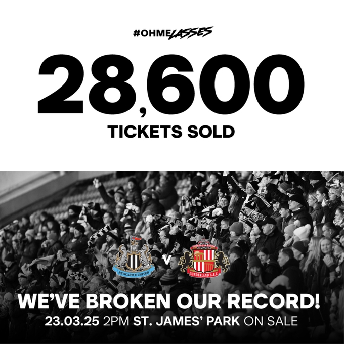 3月20日訊 紐卡女足官方發(fā)文,球隊(duì)在女足英冠主場(chǎng)迎戰(zhàn)桑德蘭女足的比賽售出28600張票,這創(chuàng)下了紐卡女足的隊(duì)史紀(jì)錄。