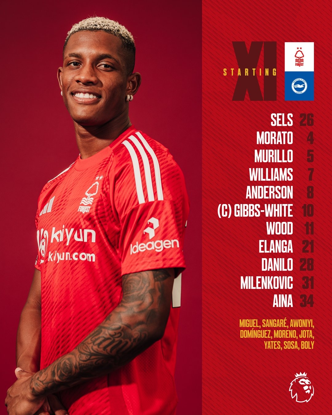 諾丁漢森林VS布萊頓首發(fā):伊蘭加PK三笘薫,伍德先發(fā)