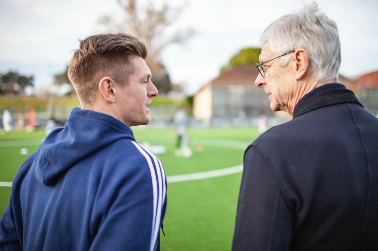 溫格造訪克羅斯青訓(xùn)營(yíng)并頒發(fā)FIFA最佳陣容獎(jiǎng)杯,克羅斯發(fā)文致謝