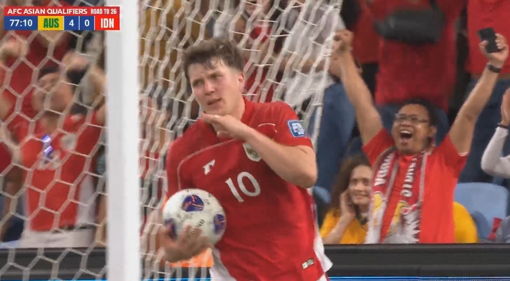 03月20日訊 世預(yù)賽亞洲區(qū)第三階段C組第7輪,澳大利亞vs印尼,比賽第78分鐘,澳大利亞后防失誤,印尼歸化前鋒羅梅尼進球,打入印尼國家隊生涯處子球,印尼仍1-4落后,克魯伊維特場邊不停鼓掌。