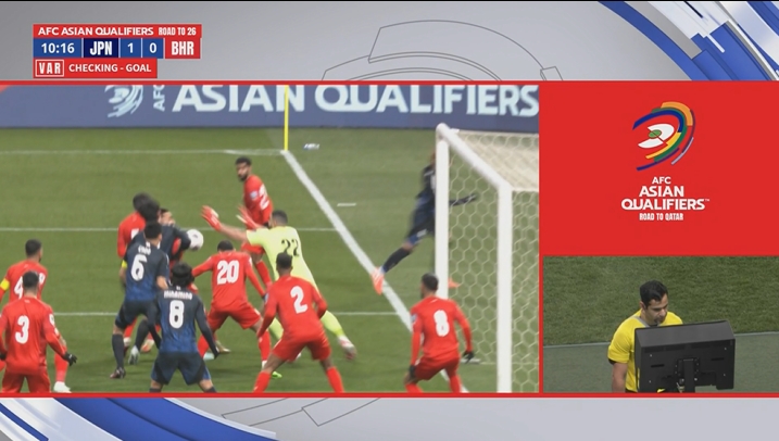 03月20日訊 世預(yù)賽亞洲區(qū)第三階段C組第7輪,日本vs巴林,比賽第9分鐘,日本隊(duì)角球開(kāi)出,遠(yuǎn)藤航亂戰(zhàn)破門,但裁判在場(chǎng)邊觀看VAR后判定上田綺世手球在先,進(jìn)球無(wú)效。