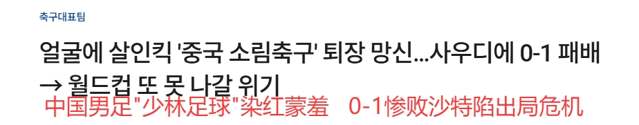 - 韓媒大面積群嘲國足:殺人飛腿、少林足球、蒙羞退場、世界杯夢碎