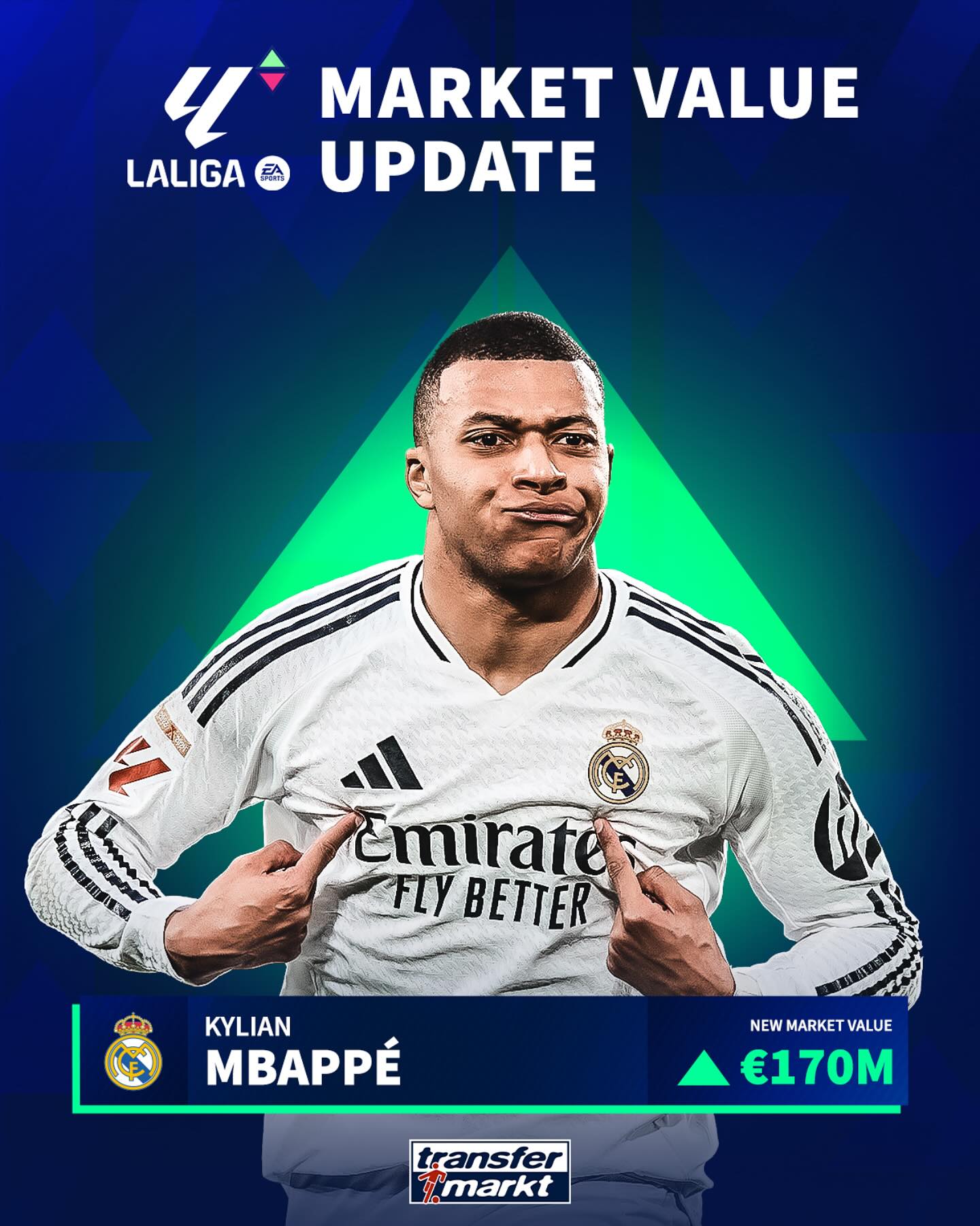 03月21日訊 今日德國(guó)轉(zhuǎn)會(huì)市場(chǎng)更新了西甲球員身價(jià),姆巴佩上漲1000萬(wàn)歐至1.7億歐。