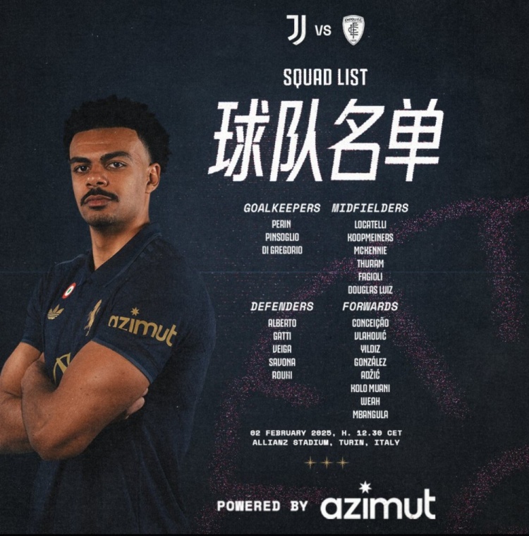 尤文對陣恩波利大名單↓