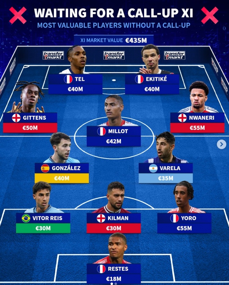 3月22日訊 本月的國家隊比賽正在進行中,《轉(zhuǎn)會市場》也列出了仍未獲得國家隊征召的當前最貴陣,法國5將在列。