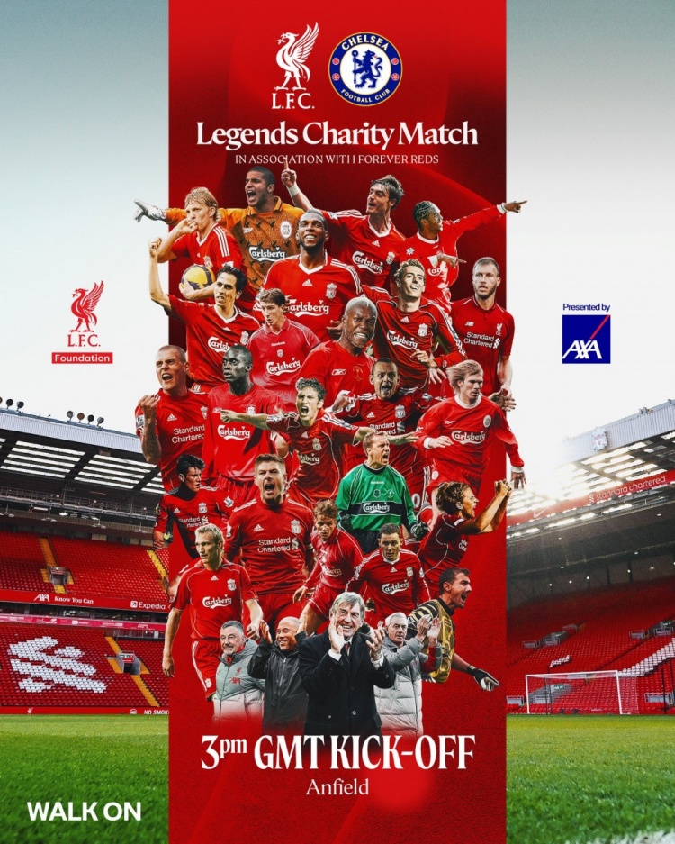 3月22日訊 利物浦傳奇隊(duì)將在安菲爾德的慈善賽中對(duì)陣切爾西傳奇隊(duì),利物浦官方社媒曬出海報(bào),預(yù)熱這場比賽。