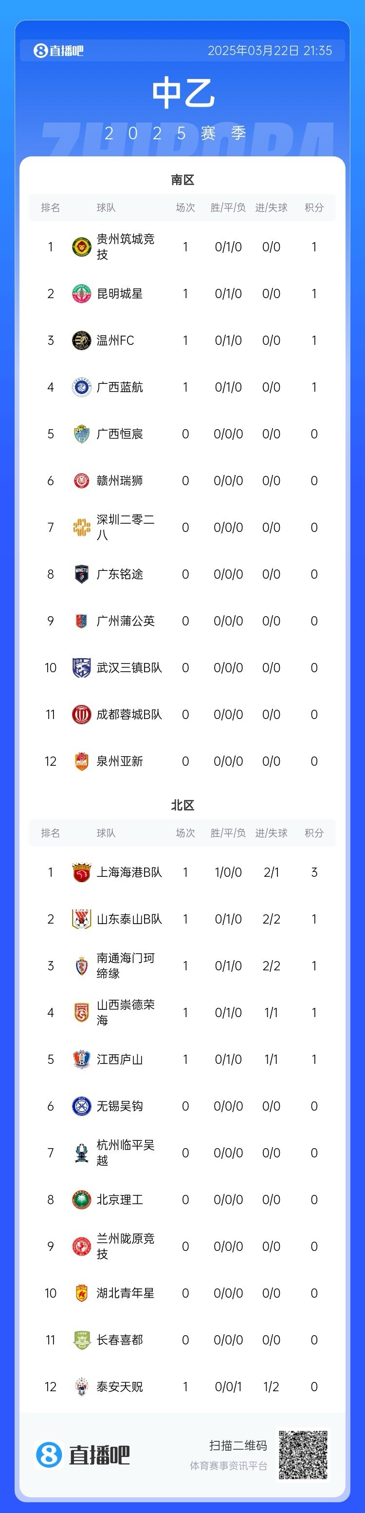 3月22日訊 2025賽季中乙聯(lián)賽今天拉開帷幕,在首日進(jìn)行的5場(chǎng)比賽中,海港B隊(duì)擊敗泰安天貺,泰山B隊(duì)2-2海門珂締緣。