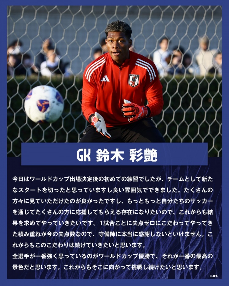 鈴木彩艷說道:“今天是確定晉級(jí)世界杯后的首次訓(xùn)練,我覺得全隊(duì)已經(jīng)開啟了新的起點(diǎn),整個(gè)訓(xùn)練氛圍也非常積極。能夠有這么多球迷到場支持讓我們倍感振奮,未來我們希望通過自己的表現(xiàn)贏得更多人的喜愛與支持,為此我們將繼續(xù)以追求成績?yōu)槟繕?biāo)。”