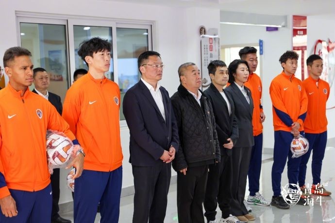 青島市民政局局長江聯(lián)軍、青島海牛足球俱樂部董事長喬偉光,總經(jīng)理張冬、副總經(jīng)理馮文靜,球員宋龍、牟鵬飛、劉軍帥、林創(chuàng)益、席爾瓦、奧古斯托參加了此次活動。