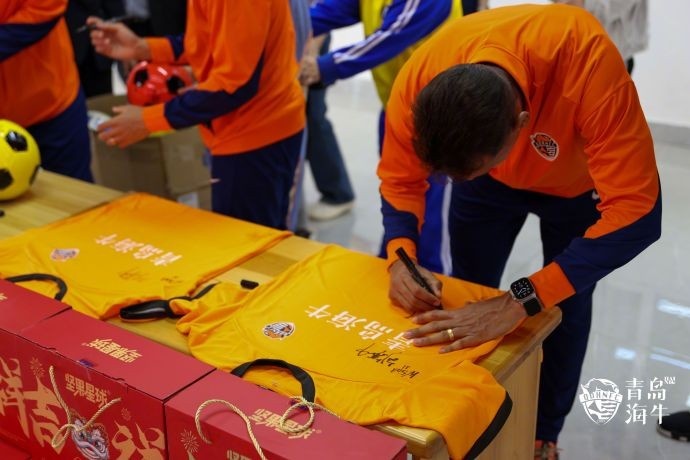 初春的青島充滿暖意,海牛俱樂部球員們的到來更是給孩子們帶來了歡聲笑語。俱樂部為兒童福利院捐贈了牛奶、堅果、足球及其他生活用品,并為兒童福利院送上簽名足球、球衣、專屬球衣等紀(jì)念禮品。
