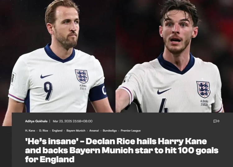 3月24日訊 英格蘭隊2-0戰(zhàn)勝阿爾巴尼亞的世預(yù)賽中,凱恩打進了代表三獅軍團的第70個進球。賴斯在談到凱恩時表示,凱恩一定能夠完成國家隊百球成就。