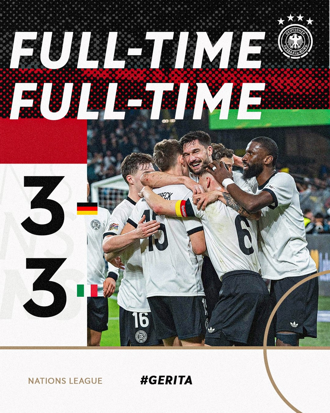 歐國聯(lián)八強(qiáng)戰(zhàn)次回合,德國3-3,總比分5-4戰(zhàn)勝意大利晉級,基米希1射2傳,基恩梅開二度。