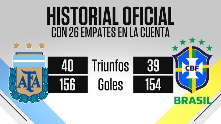據(jù)ESPN統(tǒng)計(jì),阿根廷與巴西交手105次,阿根廷戰(zhàn)績40勝26平39負(fù),打進(jìn)156球,丟掉154球。