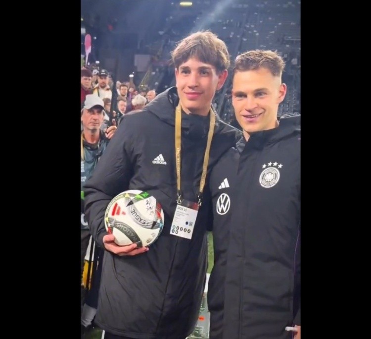 值得一提的是,現(xiàn)場的德國球童第一時間將足球拋給基米希,在很大程度上幫助實現(xiàn)了這一進球?;紫R苍谫惡笳业竭@位球童,為其送上簽名足球并合影鼓勵。