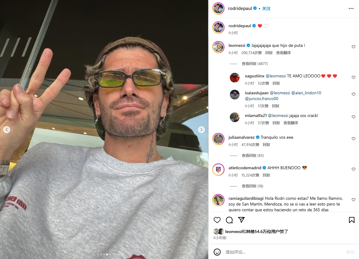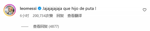 梅西在評(píng)論區(qū)評(píng)論道:“哈哈哈哈,你這狗娘養(yǎng)的。”