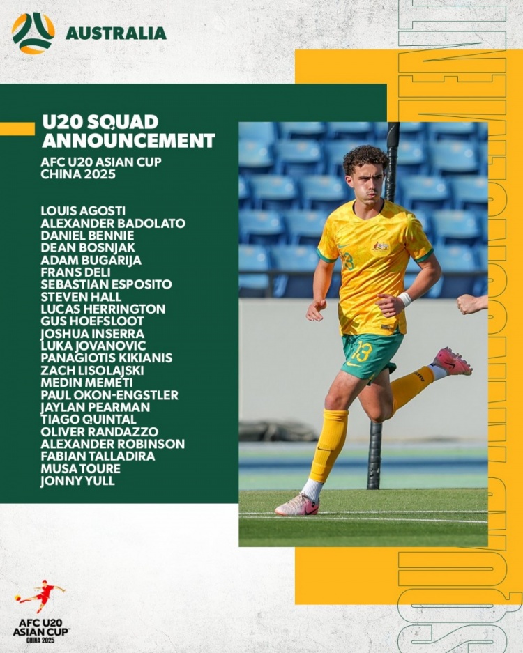 澳大利亞國青U20亞洲杯名單:伊蘭昆達無緣,小組末輪戰(zhàn)中國